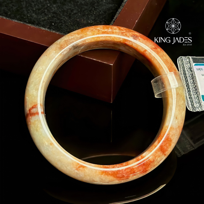 Đặc điểm nhận diện vòng Ngọc Huyết King Jades 007 là những vân đá màu đỏ xen lẫn màu trắng, vàng… sở hữu sắc đẹp vốn có, càng mang càng bóng sáng. Nằm sâu dưới lòng đất, nên việc khai thác đá rất khó khăn, nên giá thành của vòng Ngọc Huyết King Jades 007 khá đắt đỏ, phù hợp với khách hàng kinh tế khá.